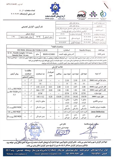 تست تخصصی سوزن های ضدزنگ فولادی  | آزمایشگاه مرجع آزما پژوهان صنعت(apka)  | ISO 9626  |